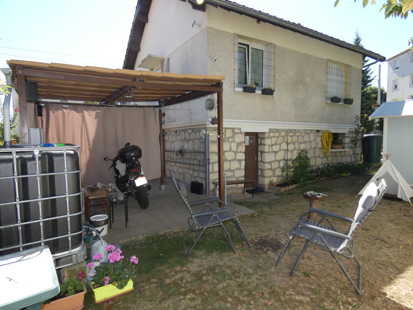 Maison indépendante de 1964, 3 pièces, 60 m² habitables et 91 m² utiles sur terrain de 273 m² et comprenant en rez-de-jardin, une chaufferie gaz, une chambre avec placard et un garage avec buanderie. Au rez-de-chaussée surélevé, une entrée, un séjour, une cuisine indépendante aménagée, une salle de bains, chambre et wc indépendants. Grenier. Fenêtres PVC double vitrage, chauffage gaz individuel. Abris de jardin, serre, terrasse et portail motorisé. Honoraires d'agence charge vendeur