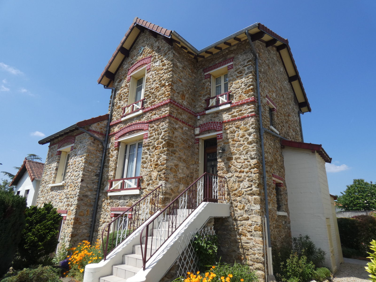 A 12 minutes à pieds du centre ville avec gare SNCF (ligne PARIS EST) et tous commerces, jolie meulière de 100 m² habitables et 130 m² UTILES sur terrain clos sans vis-à-vis de 519 m² avec sous-sol total. Au rez-de-chaussée, une entrée, un séjour double, une cuisine indépendante, un dégagement, une belle chambre avec placard, une salle de bains + douche, wc. A l'étage, un palier avec placard, 2 chambres, une salle de bains. Au sous-sol, wc, une cave, une buanderie et une chaufferie. Un garage 2 voitures + 1 parking extérieur. Chauffage gaz individuel. Fenêtres double vitrage. Ecoles à proximité, accès rapide à l'A 104. Du cachet, lumineux et des possibilités. Honoraires d'agence charge vendeur.