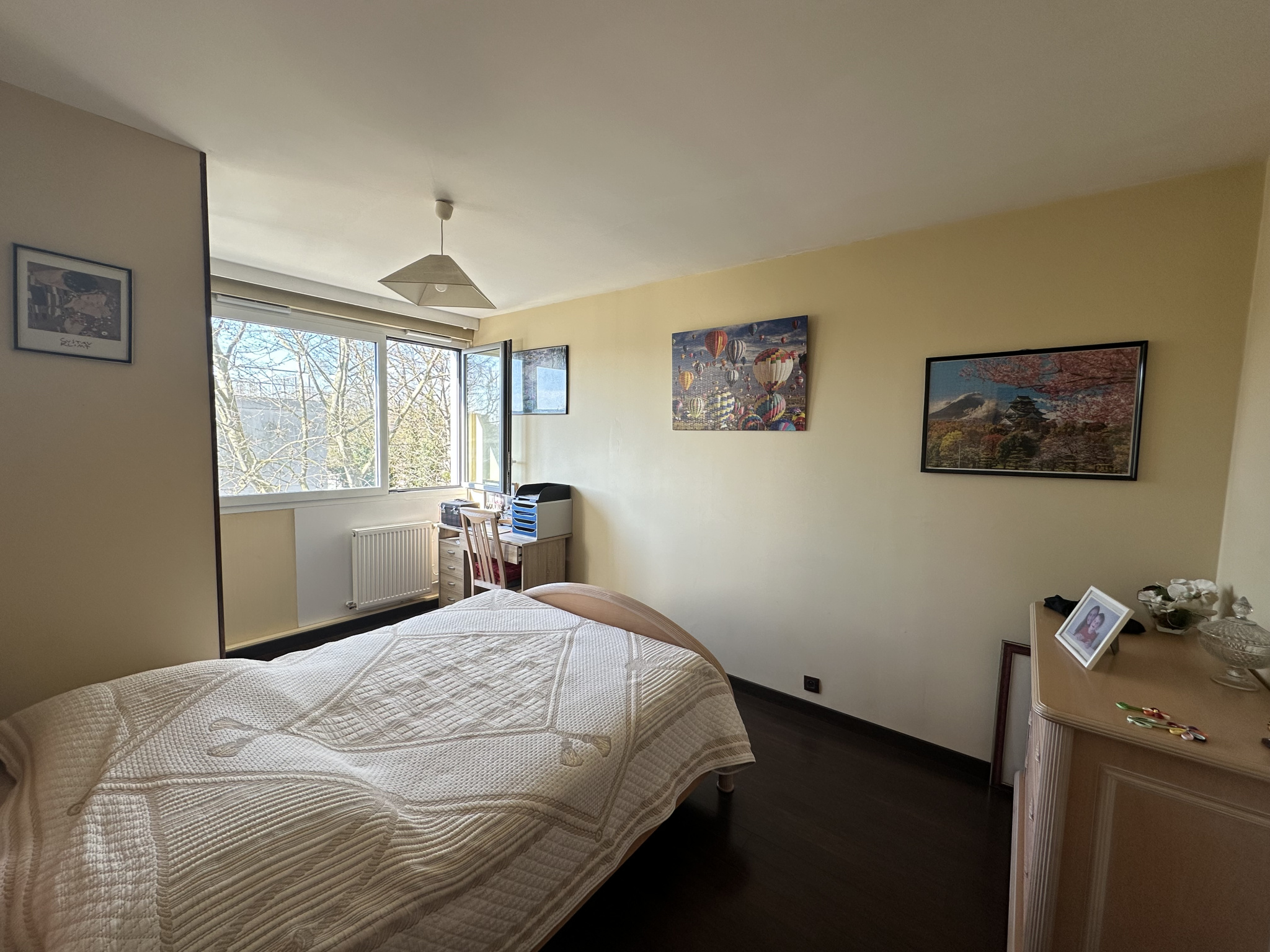 En centre ville, dans une résidence sur un parc de 11 ha, F2 de 46 m² situé au 2 ème étage avec ascenseur et comprenant un séjour de 21 m², une cuisine indépendante aménagée, une chambre, une salle de bains, wc. Une cave et une place de parking. Eau froide, eau chaude et chauffage inclus dans les charges. Gardien. A proximité immédiate de la gare SNCF (ligne P accès gare PARIS-EST en 18 mns) et des commerces. Rénovation énergétique de la résidence en 2025 (isolation extérieur, fenêtres, radiateurs...). Belle surface, lumineux et en bon état. Honoraires d'agence charge vendeur.