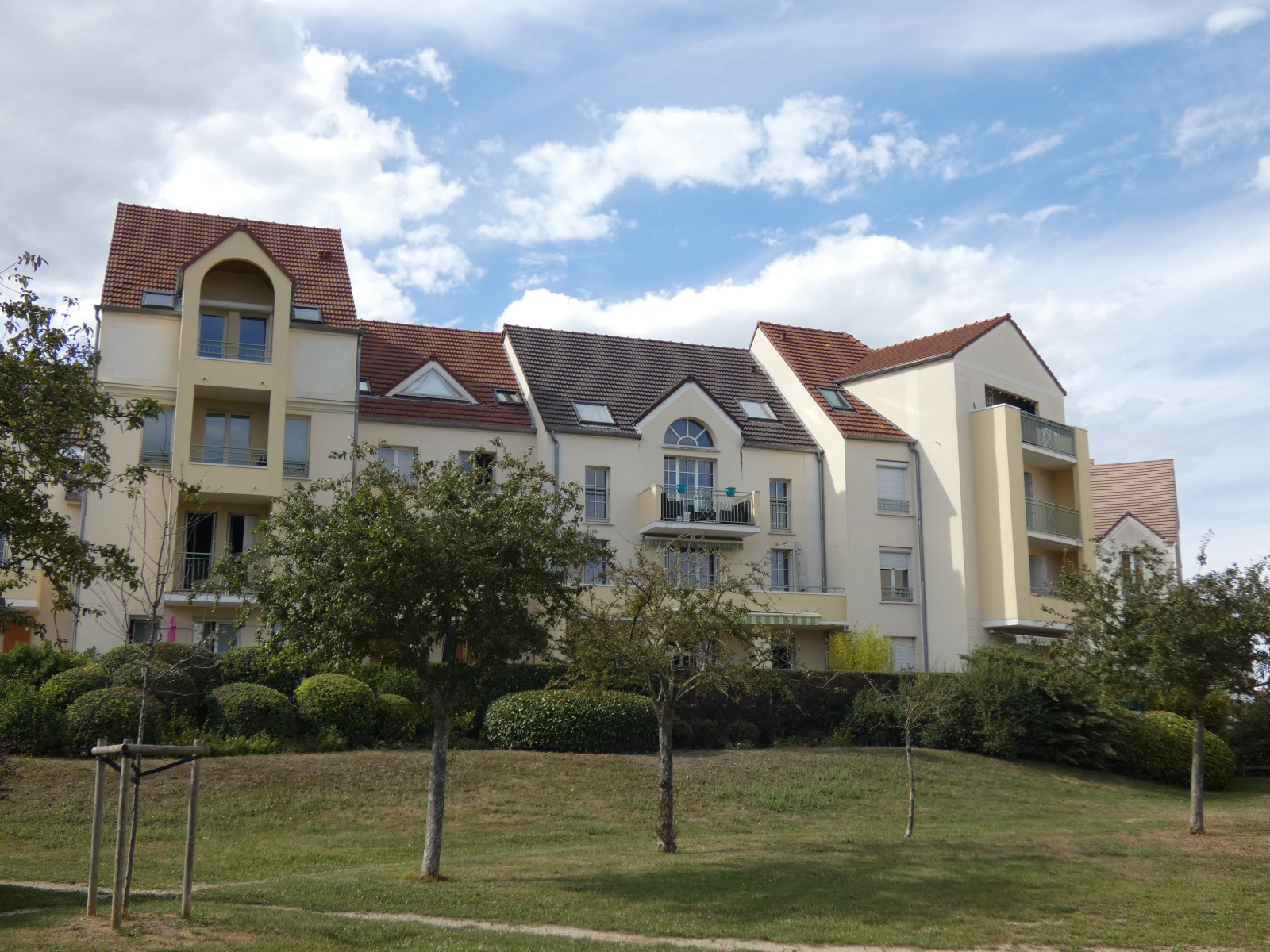 A 15 minutes à pieds de la gare SNCF (accès gare de l'Est), dans petite copropriété de 1991 avec espaces verts, bel F4 de 85 m² habitables situé au 1er étage, comprenant entrée avec placard, séjour de 25 m² avec balcon, grande cuisine indépendante équipée, dégagement desservant 3 chambres, une salle de bains, une salle d'eau, wc. Chauffage gaz individuel. 2 parkings s/sol. Bon état général, calme et lumineux. Proche écoles et base olympique JO 2024. Honoraires d'agence charge vendeur.